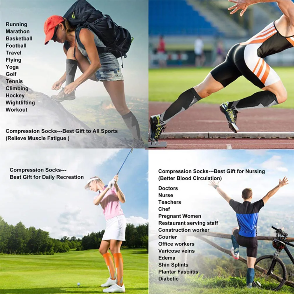 Whether you’re an athlete who wants to excel in the game, who sit for long period during travel or at work, or someone dealing with pain due to a chronic condition, supporting proper blood flow to your feet is of the utmost importance.Our Compression Socks are engineered with the latest arch to calf compression technology, offering a targeted foot to calf muscle support,help to keep blood flowing to boost athletic performance and alleviate pain due to a number of conditions.