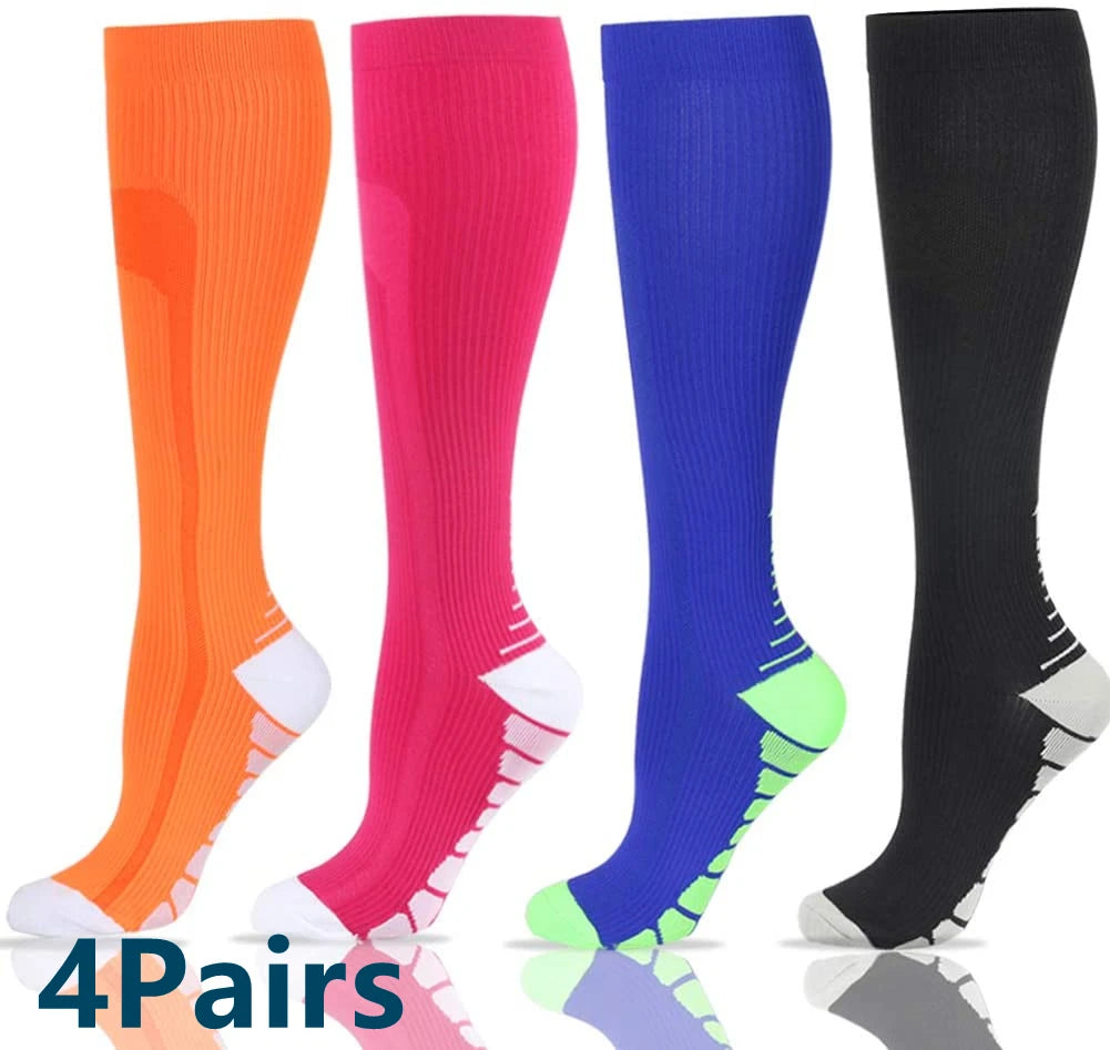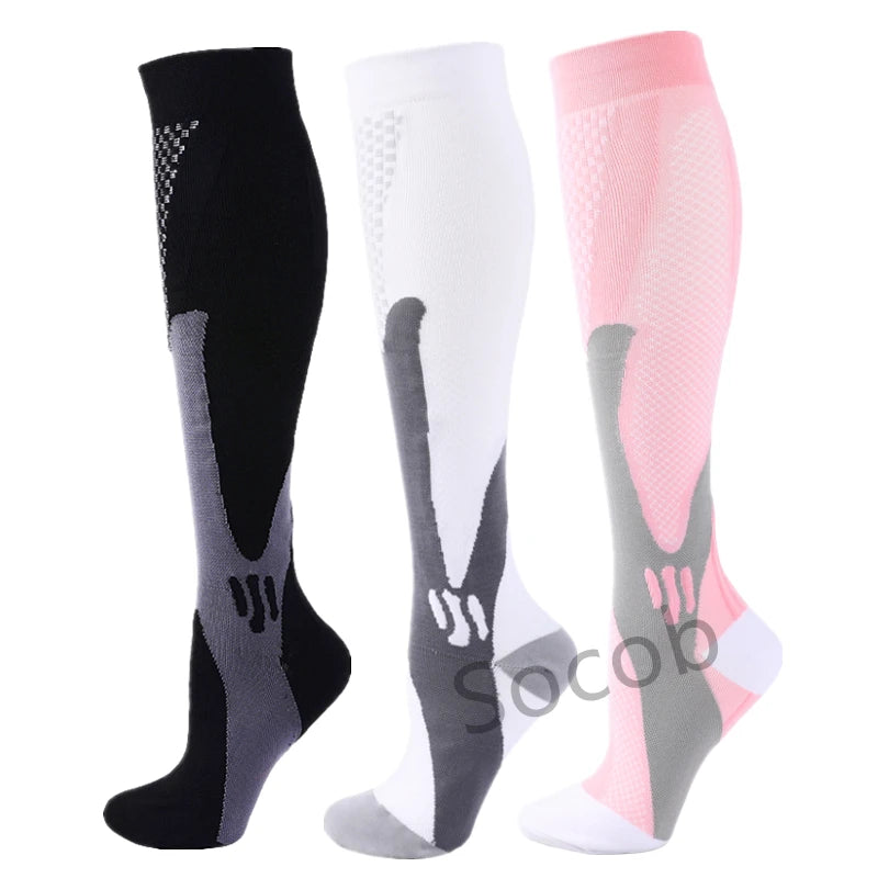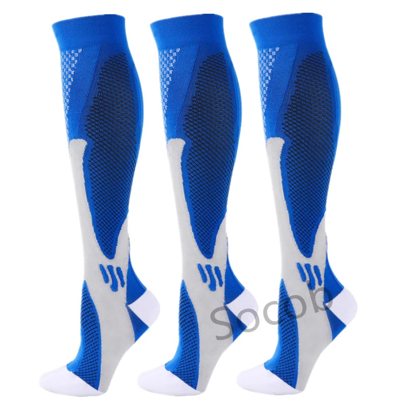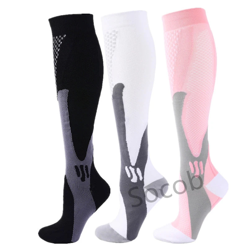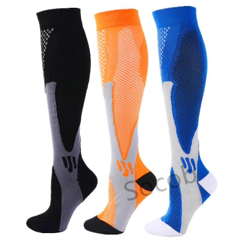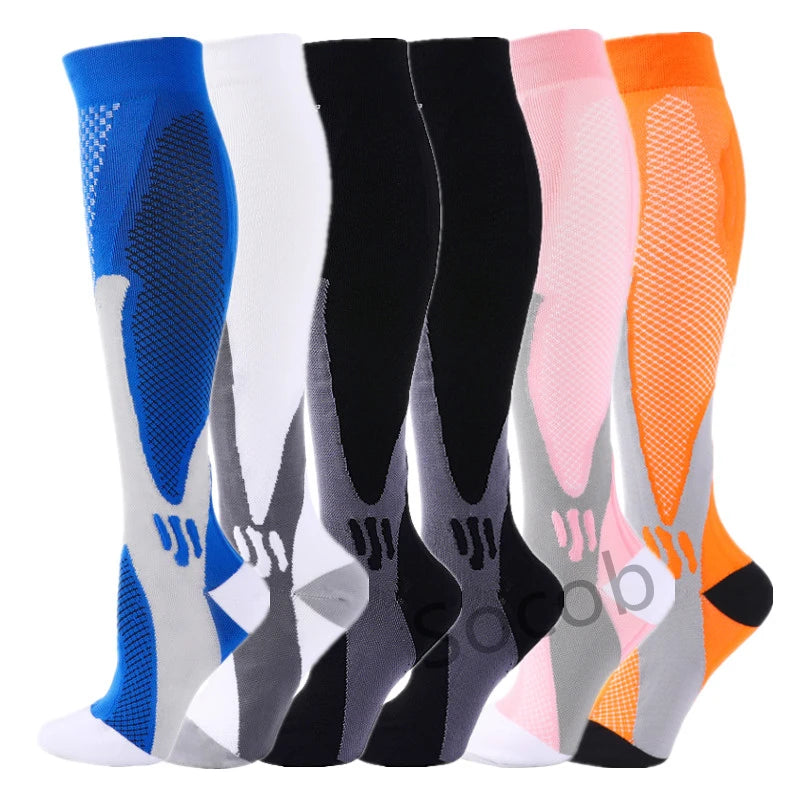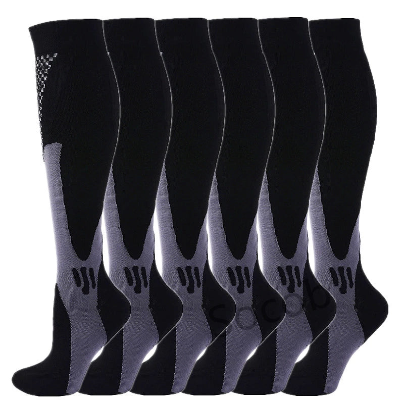 For endurance athletes, the key mechanism is the “calf muscle pump” – with each step or pedal-stroke, the clenching and unclenching of the calf muscle squeezes blood back toward the heart. Our Compression socks provide an extra squeeze that enhances this pumping action, speeding the flow of much-needed oxygen to working muscles.Speeds the circulation of blood back toward the heart and clear away metabolic waste products from the muscles.