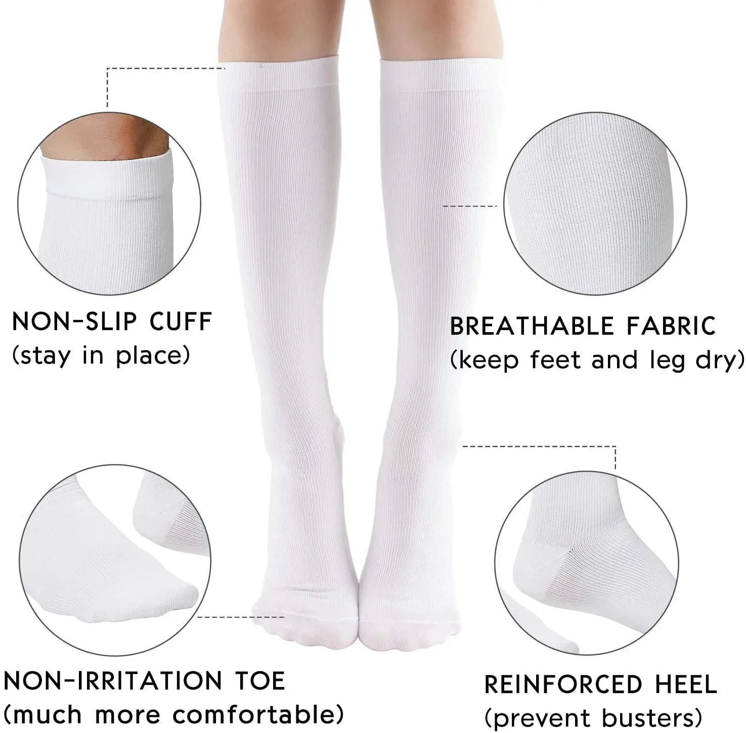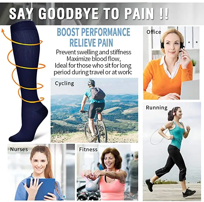 Whether you’re an athlete who wants to excel in the game, who sit for long period during travel or at work, or someone dealing with pain due to a chronic condition, supporting proper blood flow to your feet is of the utmost importance.Our Compression Socks are engineered with the latest arch to calf compression technology, offering a targeted foot to calf muscle support,help to keep blood flowing to boost athletic performance and alleviate pain due to a number of conditions.