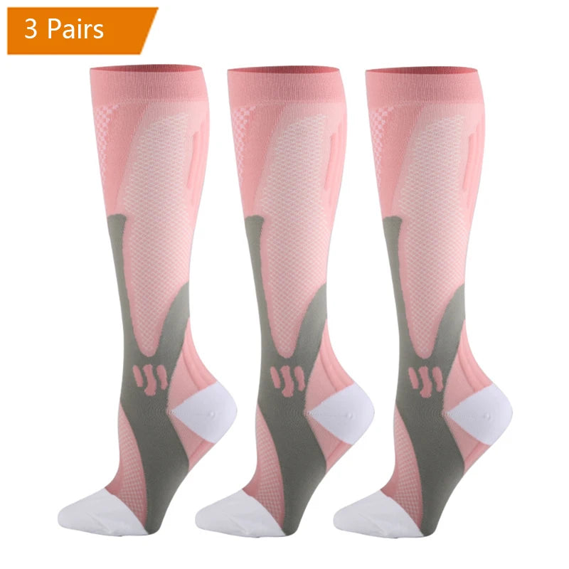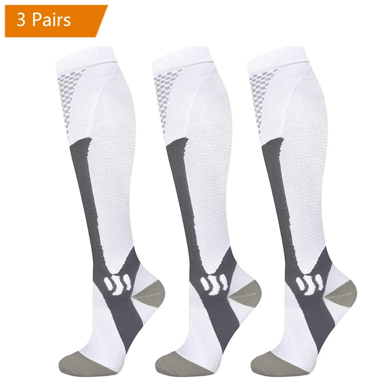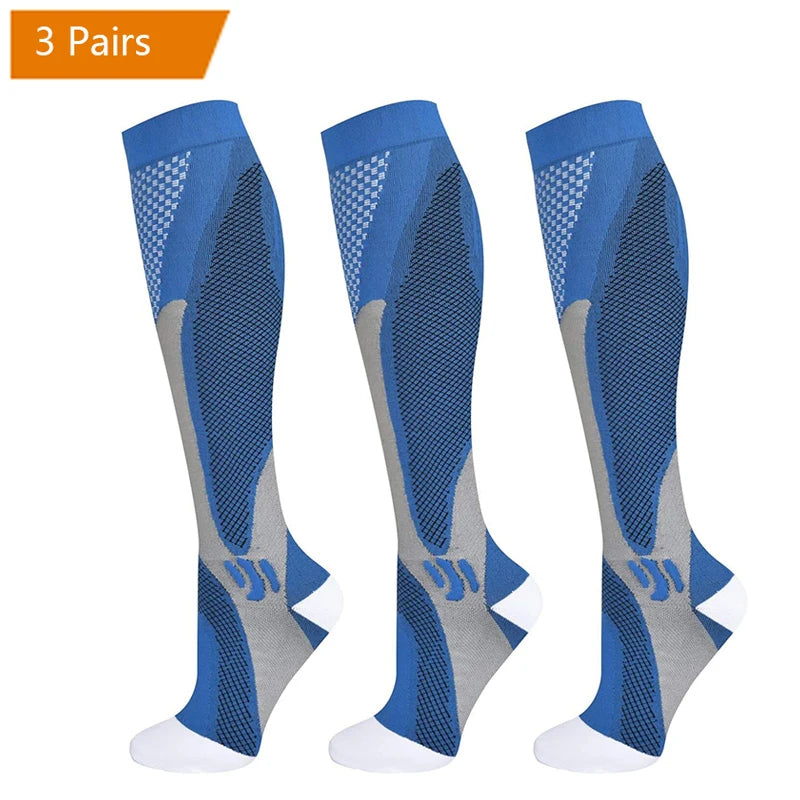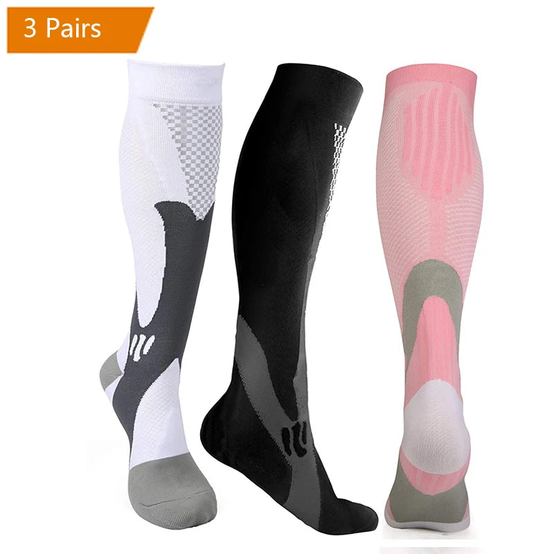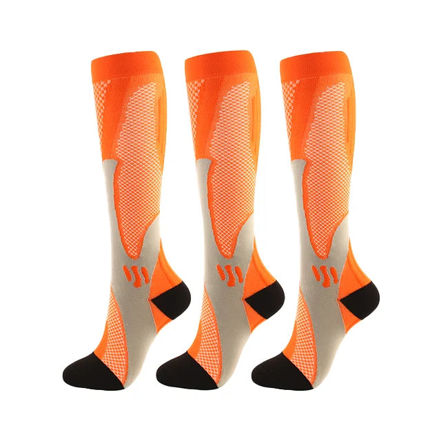 For endurance athletes, the key mechanism is the “calf muscle pump” – with each step or pedal-stroke, the clenching and unclenching of the calf muscle squeezes blood back toward the heart. Our Compression socks provide an extra squeeze that enhances this pumping action, speeding the flow of much-needed oxygen to working muscles.Speeds the circulation of blood back toward the heart and clear away metabolic waste products from the muscles.