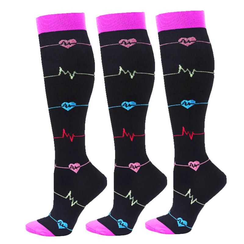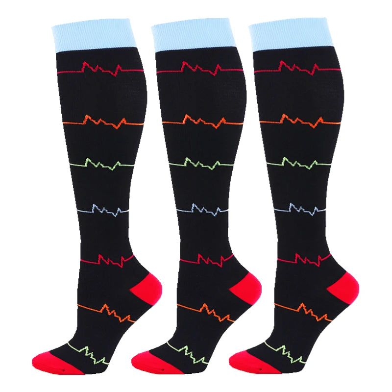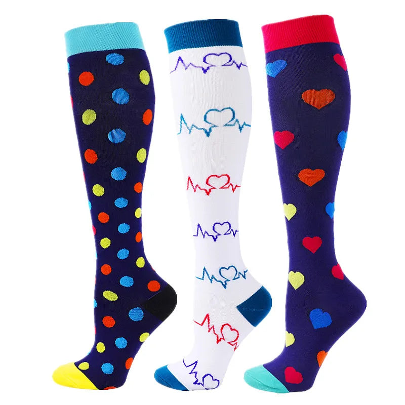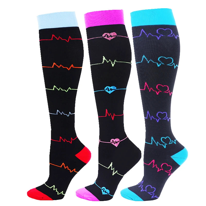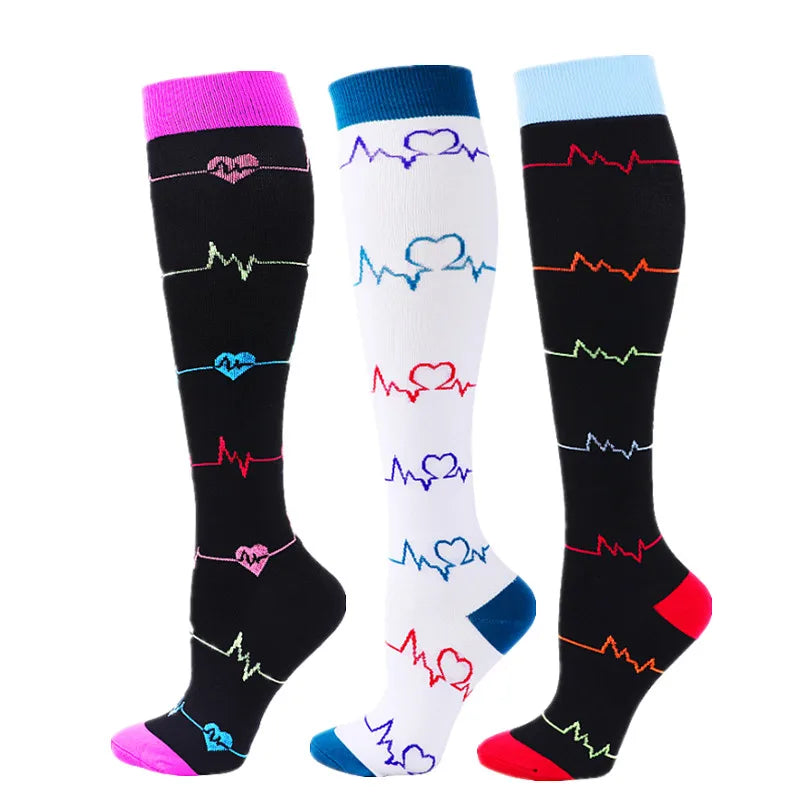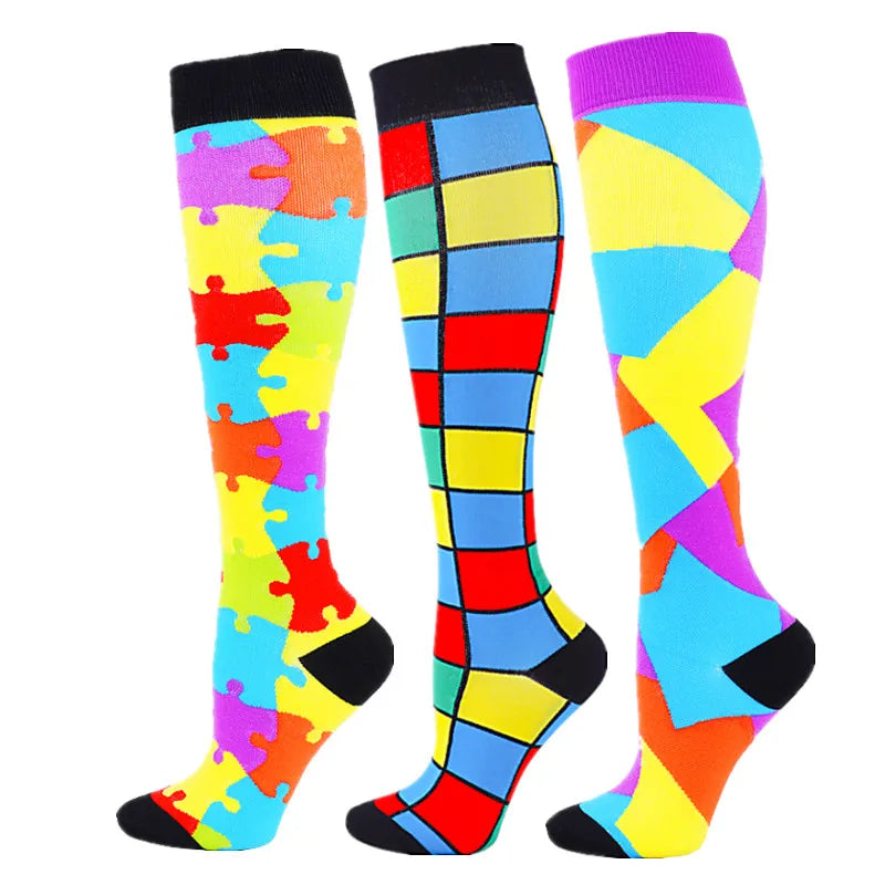 For endurance athletes, the key mechanism is the “calf muscle pump” – with each step or pedal-stroke, the clenching and unclenching of the calf muscle squeezes blood back toward the heart. Our Compression socks provide an extra squeeze that enhances this pumping action, speeding the flow of much-needed oxygen to working muscles.Speeds the circulation of blood back toward the heart and clear away metabolic waste products from the muscles.