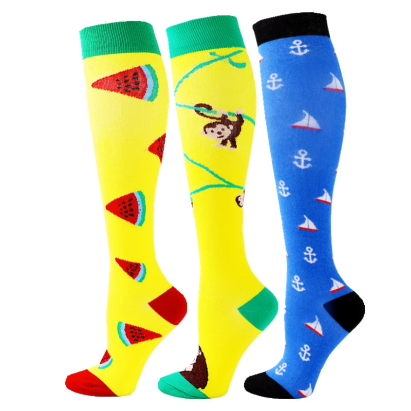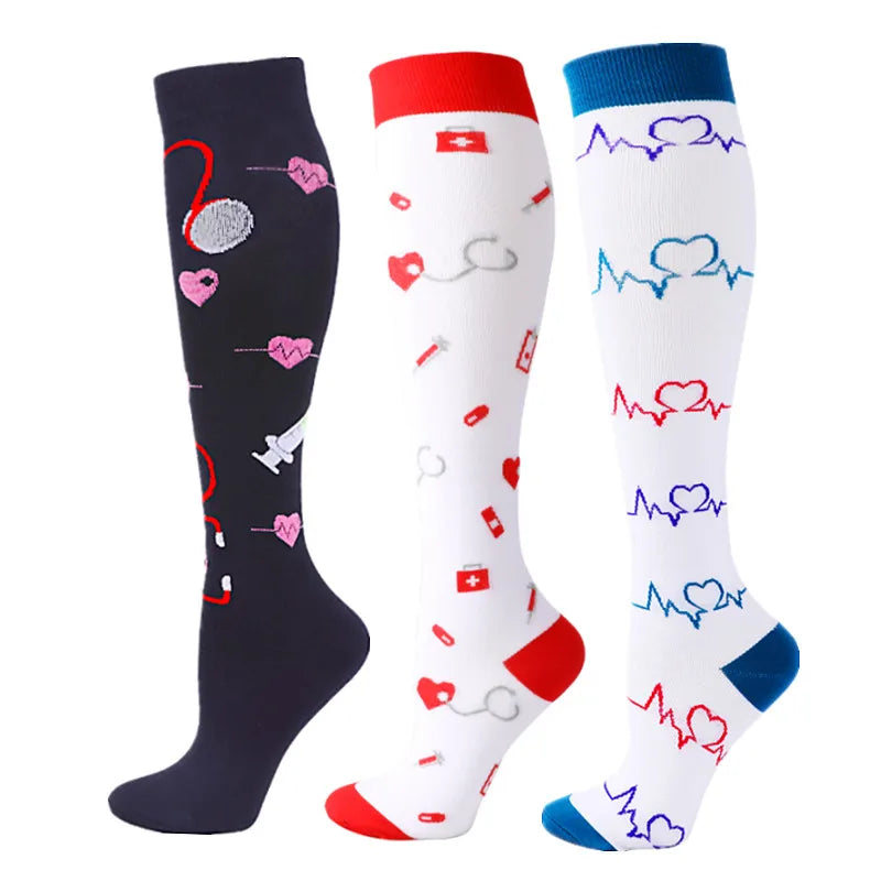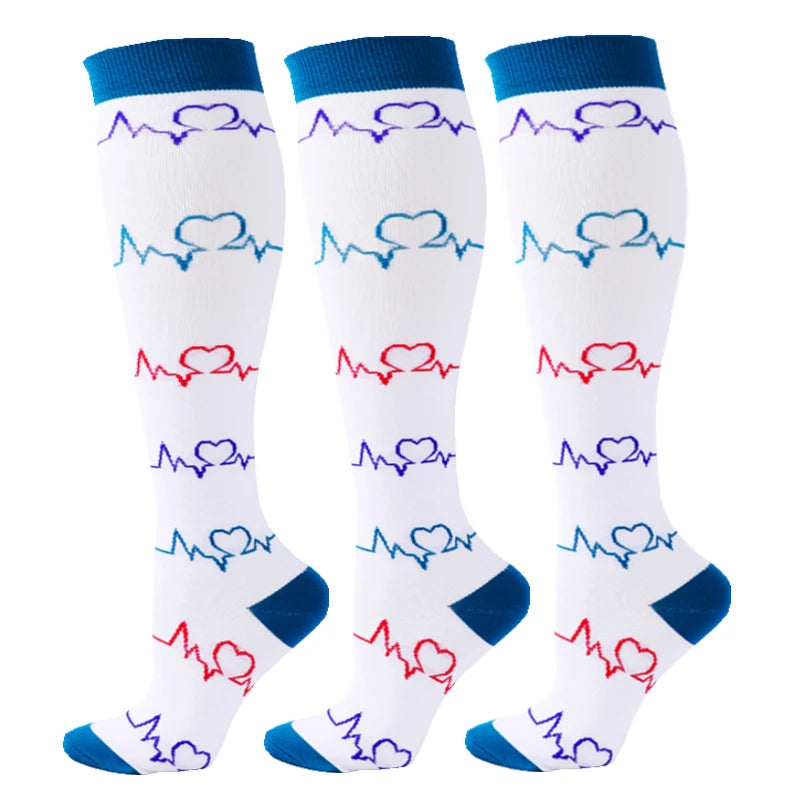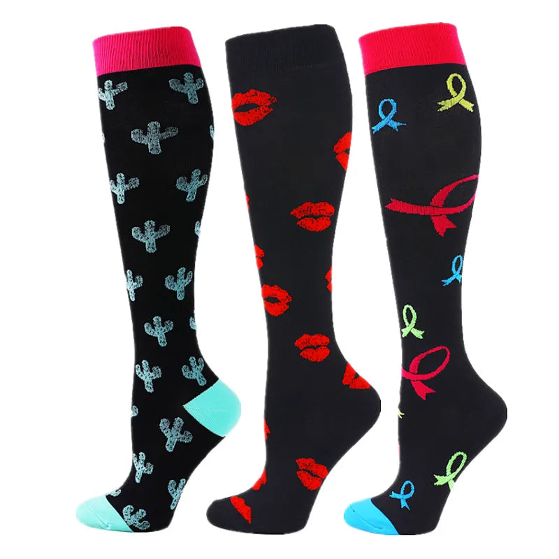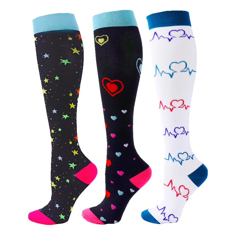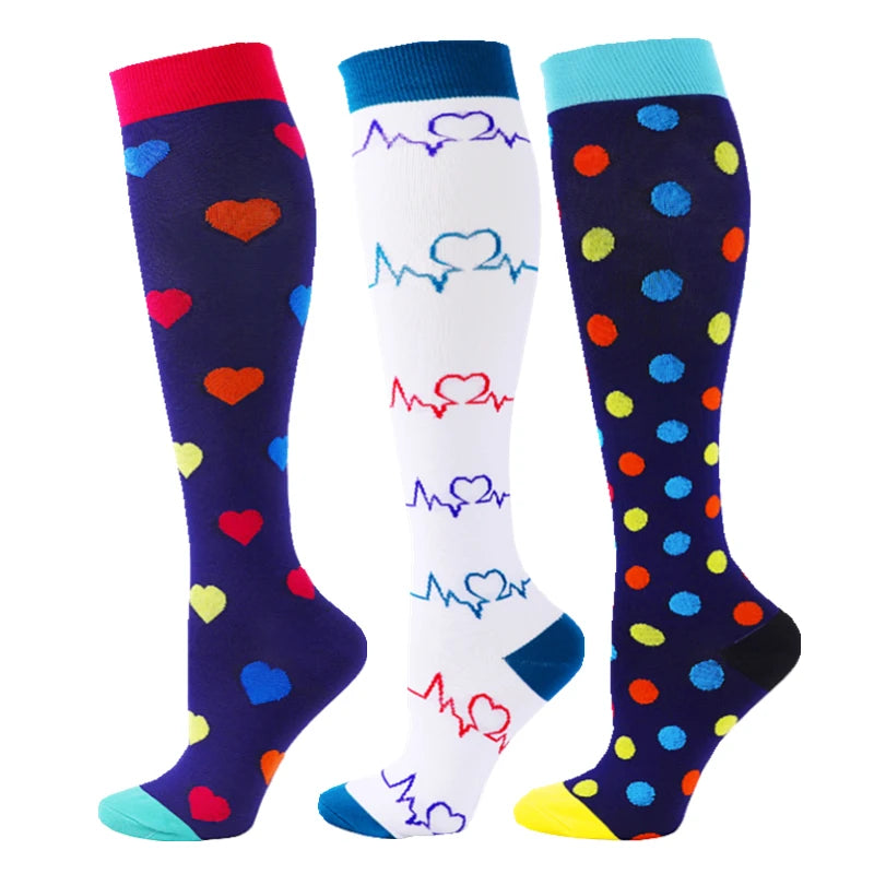 For endurance athletes, the key mechanism is the “calf muscle pump” – with each step or pedal-stroke, the clenching and unclenching of the calf muscle squeezes blood back toward the heart. Our Compression socks provide an extra squeeze that enhances this pumping action, speeding the flow of much-needed oxygen to working muscles.Speeds the circulation of blood back toward the heart and clear away metabolic waste products from the muscles.