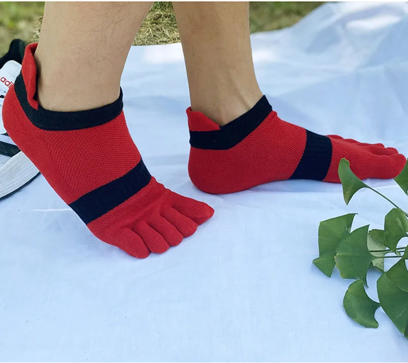 5 Pairs Large Size Five Finger Socks Men’s Crew Socks Short Cotton Mesh Breathable Running Sports Socks with Toes Male EU 46 47
