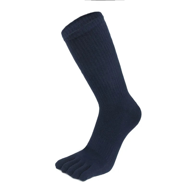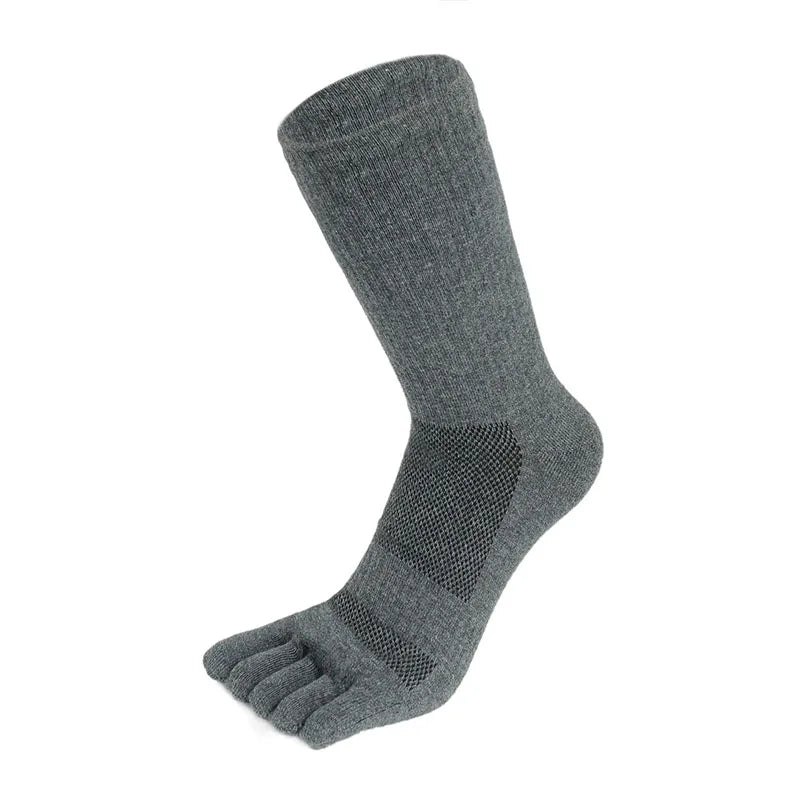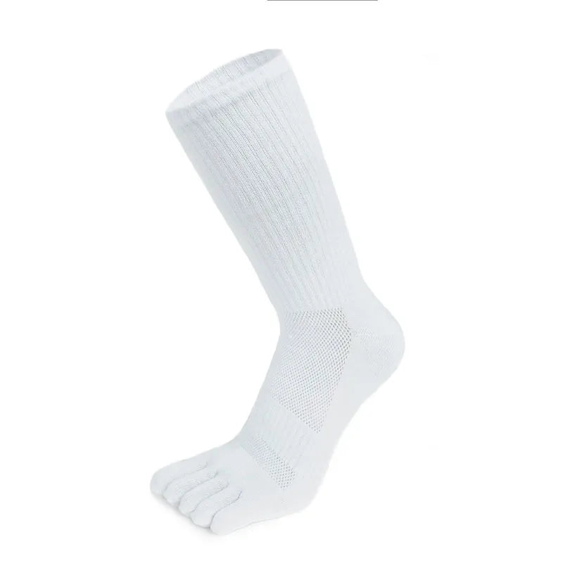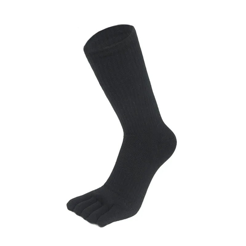 5 Pairs Men’s Mid-tube Five-Finger Socks Solid Mesh Five-Toe Socks Thick Sweat Absorbing Compression Socks Calcetines Male Gift