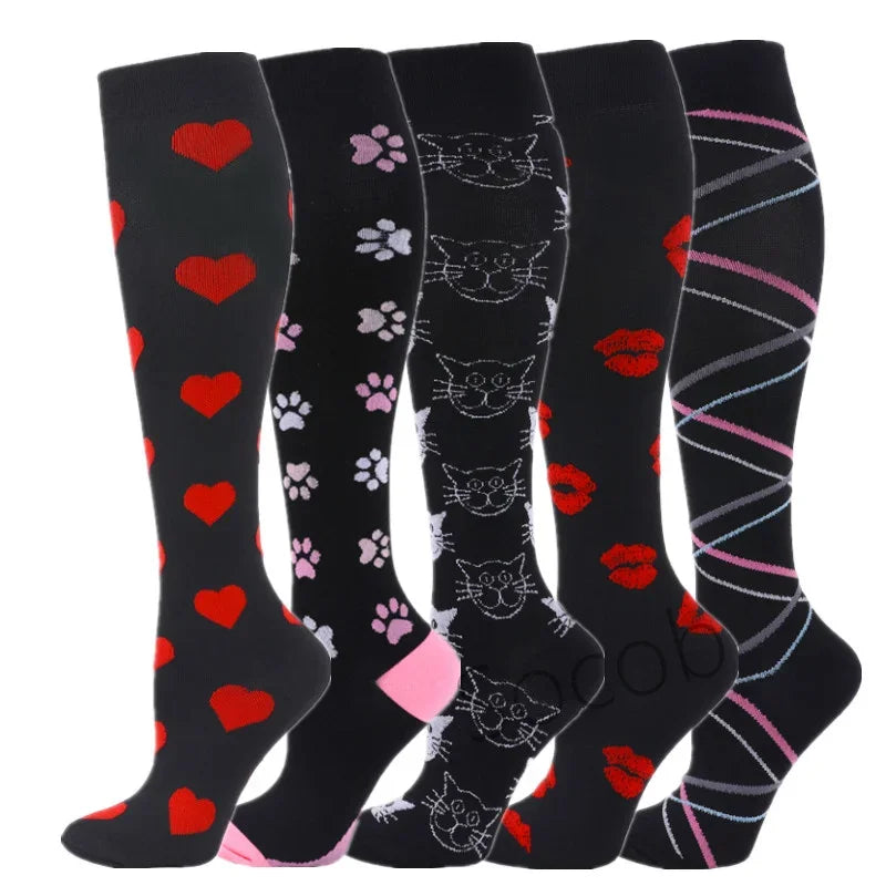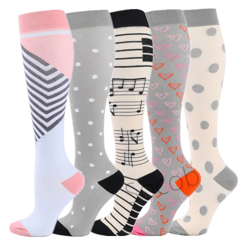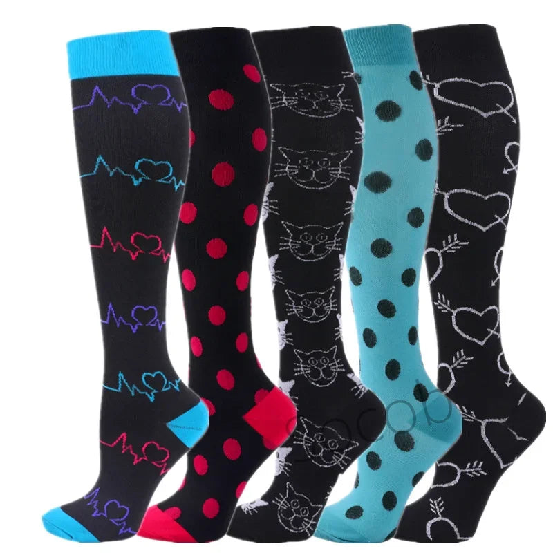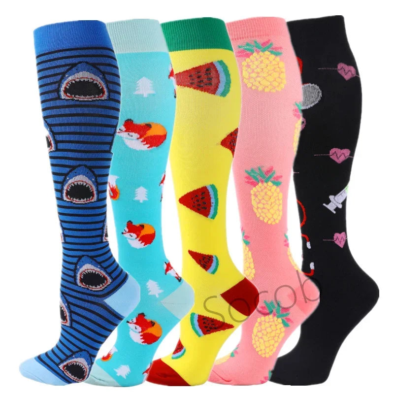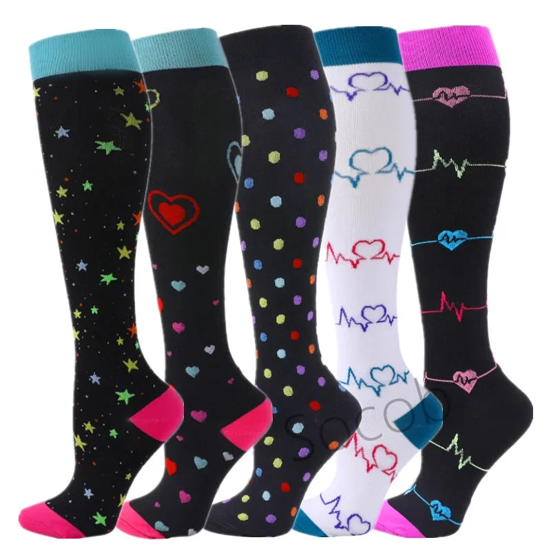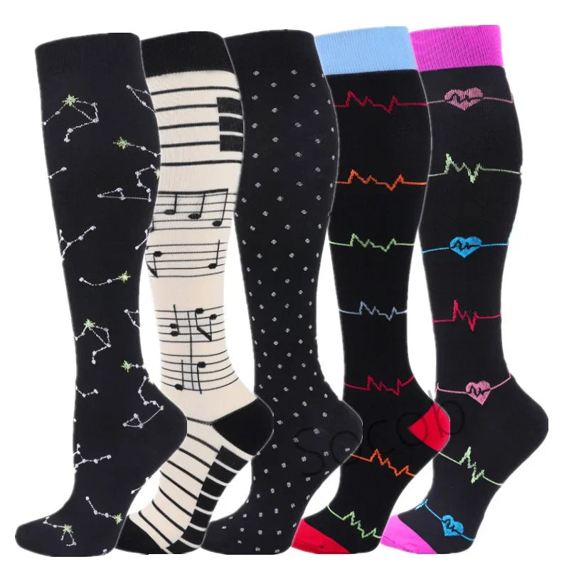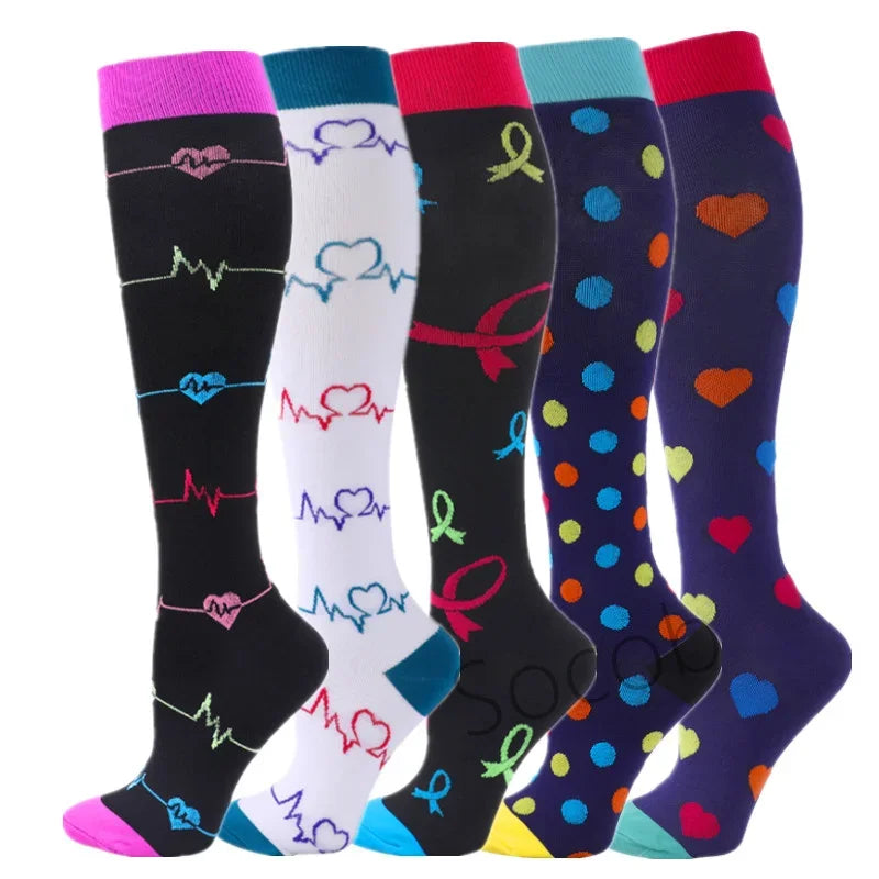 For endurance athletes, the key mechanism is the “calf muscle pump” – with each step or pedal-stroke, the clenching and unclenching of the calf muscle squeezes blood back toward the heart. Our Compression socks provide an extra squeeze that enhances this pumping action, speeding the flow of much-needed oxygen to working muscles.Speeds the circulation of blood back toward the heart and clear away metabolic waste products from the muscles.