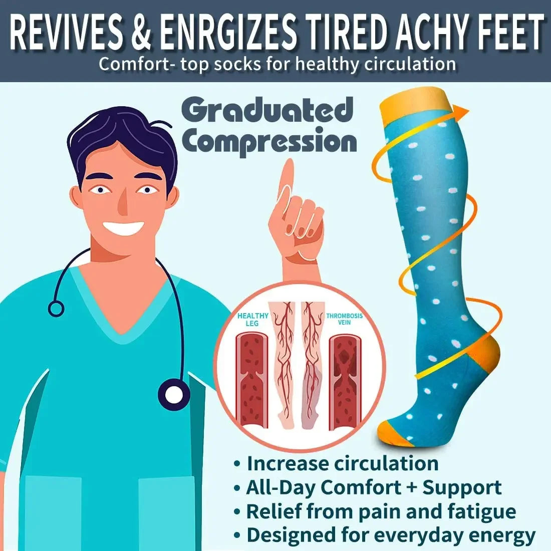 Whether you’re an athlete who wants to excel in the game, who sit for long period during travel or at work, or someone dealing with pain due to a chronic condition, supporting proper blood flow to your feet is of the utmost importance.Our Compression Socks are engineered with the latest arch to calf compression technology, offering a targeted foot to calf muscle support,help to keep blood flowing to boost athletic performance and alleviate pain due to a number of conditions.
