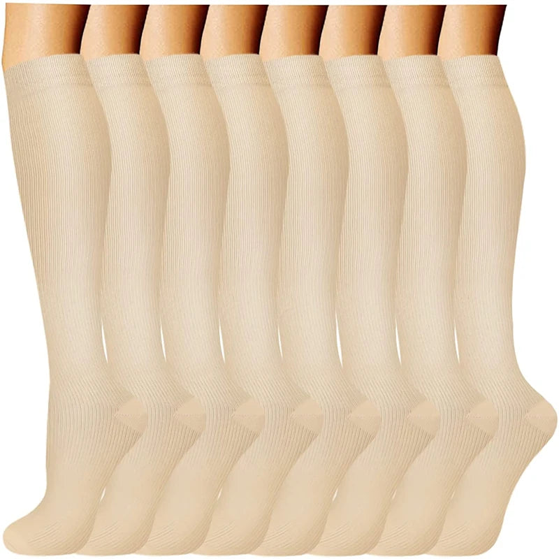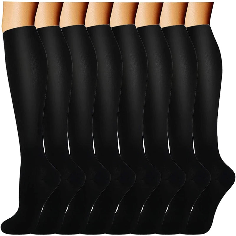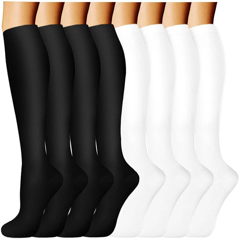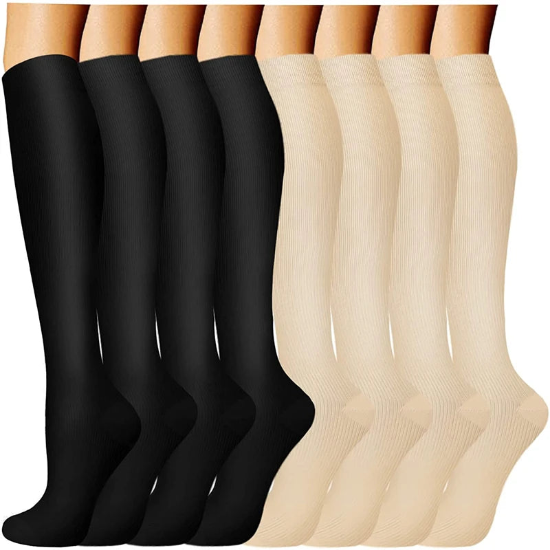 Our compression socks are made of 92% Nylon and 8% Elastane, tight stitching and non-slip cuffs provide effective compression, delivers 360-degree stretch for greater flexibility and durability